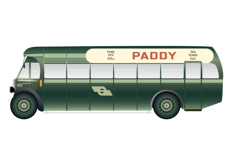 An illustration of the historic P347 Leyland Tiger — a preserved Irish bus known for its distinctive character and cinematic presence, now housed at the National Transport Museum in Howth.